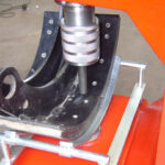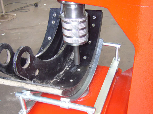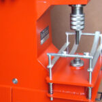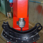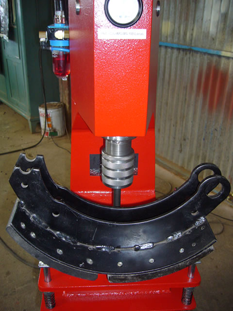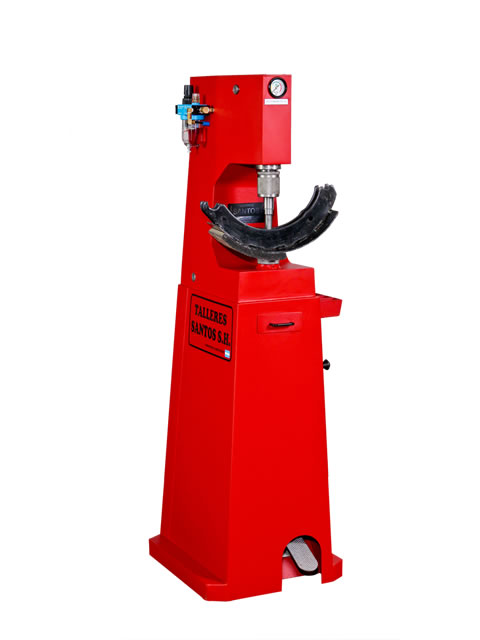 La Remachadora Neumática es una máquina construida totalmente en planchas de acero, donde todos sus ejes son de acero templado. Su sistema de doble cilindro construido también en acero rectificado le permite poseer una potencia de 3.000 kg de presión especialmente construida para remachado de cintas de frenos con remaches tubulares de acero y todo tipo de remaches de aluminio.